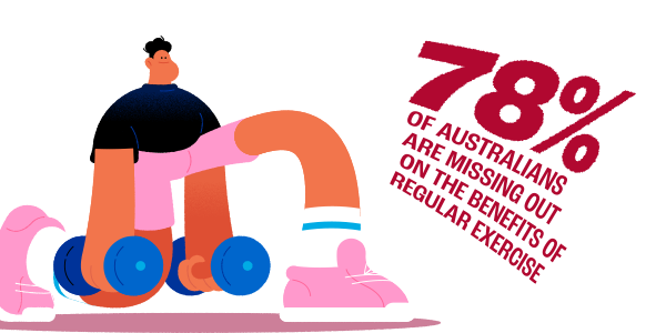 Did you know 78% of Australians are missing out on the benefits of regular exercise? Or that we spend 76% of our workday sitting down? Physical inactivity is now the second biggest health risk in Australia, but together we have the power to turn this around. Modern life may have knocked fitness down the to-do list, but we're here to help you put it back on top. Every step, every stretch, and every workout counts towards a fitter, healthier you. So, grab your free trial and get started today. Let’s put fitness first.